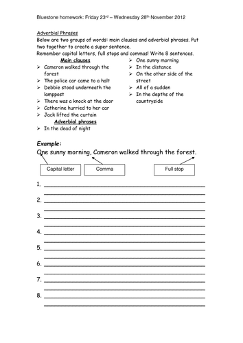 An adverbial phrase is a group of words that functions as an adverb. This handy worksheet has different activities to help your child learn and practise fronted adverbials. Students choose correct answers , then fill in the gaps in the text and finally they complete. Some of the worksheets displayed are adverbial phrases work, prepositional phrases as adverbs, adverb phrases work, prepositional phrases, adverb or adverbial phrases structure meaning. Worksheet will open in a new window.