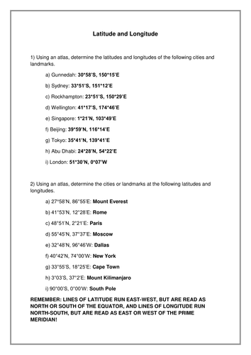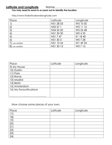 Longitudes meet at the poles. Click to read more facts or download the latitude and longitude fact file. Latitude and longitude is a coordinate system that is used for locating any place on the globe. Latitude and longitude are imaginary lines that help people find the exact location of a place. Latitude and longitude a simple worksheet.