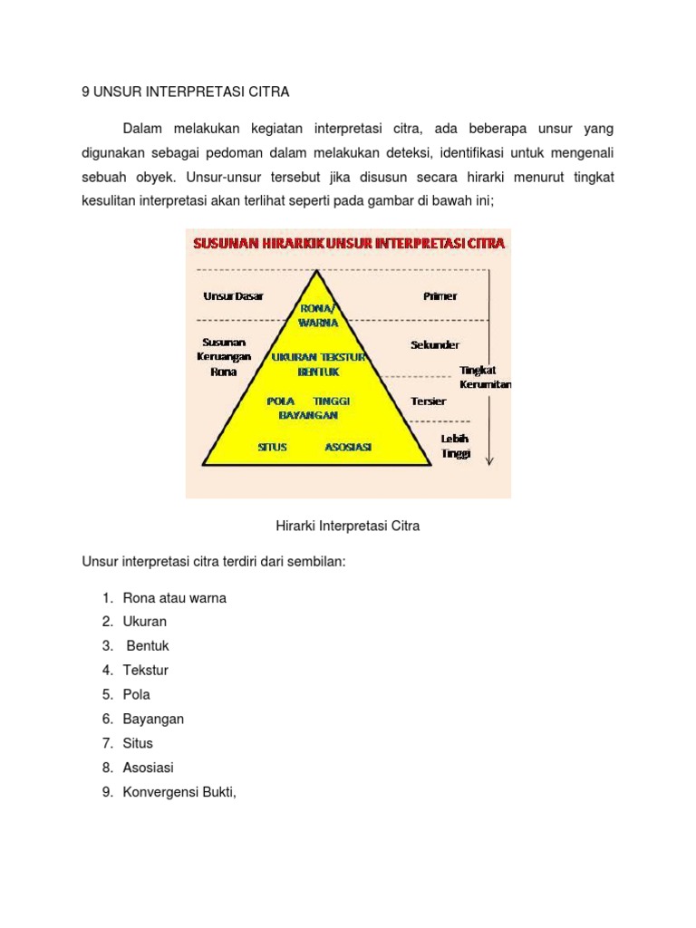 Catatan Kurnia Triyuli Unsur Bayangan Pada Interpretasi Citra from andimanwno.files.wordpress.com (1) huddleston dalam (buchari alma, 2008:55) memberikan definisi atau pengertian citra dengan. Interpretasi citra merupakan suatu kegiatan untuk menentukan bentuk dan sifat obyek yang tampak pada citra, berikut deskripsinya. Rona merupakan unsur dalam interpretasi citra yang digunkana untuk mengatur tingkat kecerahan pada obyek suatu citra. Pengertian interpretasi menurut para ahli : Bentuk merupakan unit penggunaan lahan. Unsur interpretasi citra oleh : Pencitraan berasal dari kata citra, arti kata citra banyak ahli bahasa mengungkapkan, diantaranya : Feature extraction dilakukan dengan cara menghitung jumlah titik atau pixels yang ditemui dalam setiap pengecekan, dimana pengecekan dilakukan dalam berbagai arah tracing pengecekan pada koordinat kartesian dari citra digital yang dianalisis, yaitu vertikal, horizontal, diagonal kanan, dan diagonal kiri.